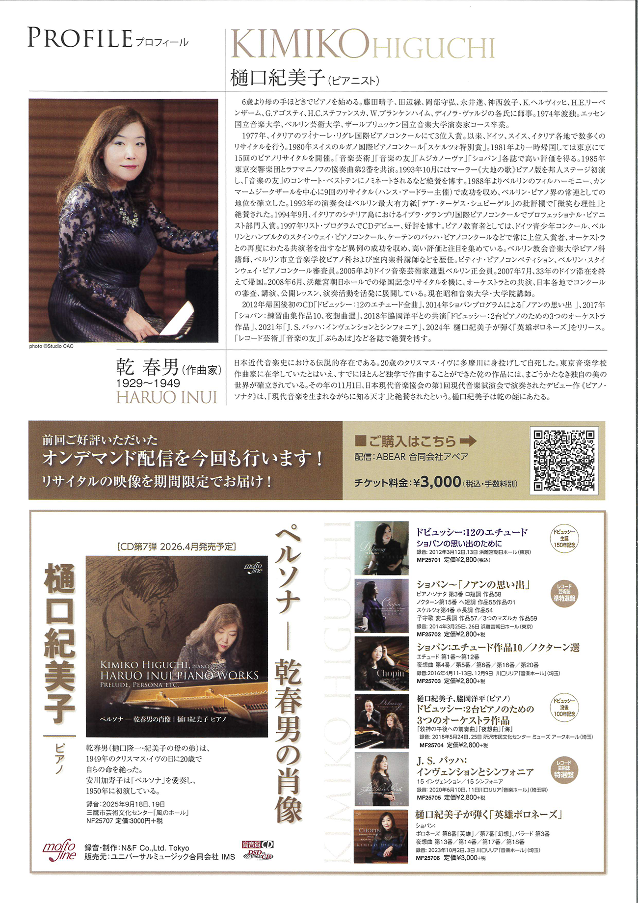 ■ 樋口紀美子(ピアノ) Kimiko Higuchi/Piano