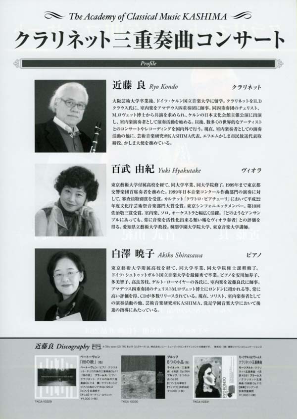 クラリネット:近藤 良 ヴィオラ:百武由紀 ピアノ:白澤暁子 |