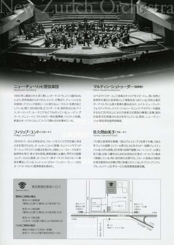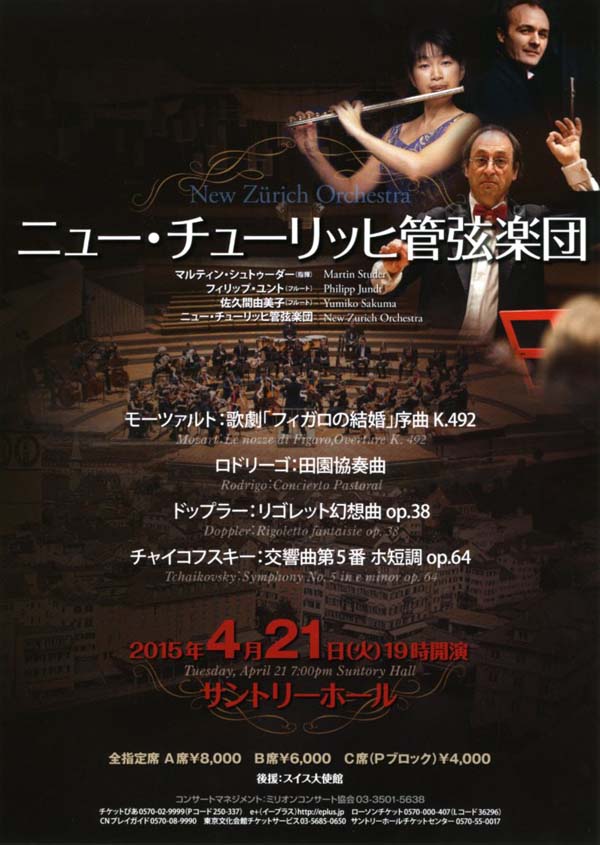 指揮:マルティン・シュトゥーダー フルート:フィリップ・ユント フルート:佐久間由美子 オーケストラ:ニュー・チューリッヒ管弦楽団 |