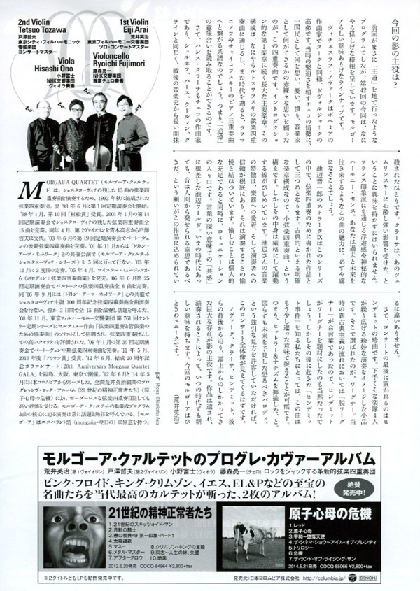 '01年11月からは「トリトン・アーツ・ネットワーク」との共催公演で《モルゴーア・クァルテット ショスタコーヴィチ・シリーズ》を5回に亘って行ない、'03年12月に2度目の完奏。