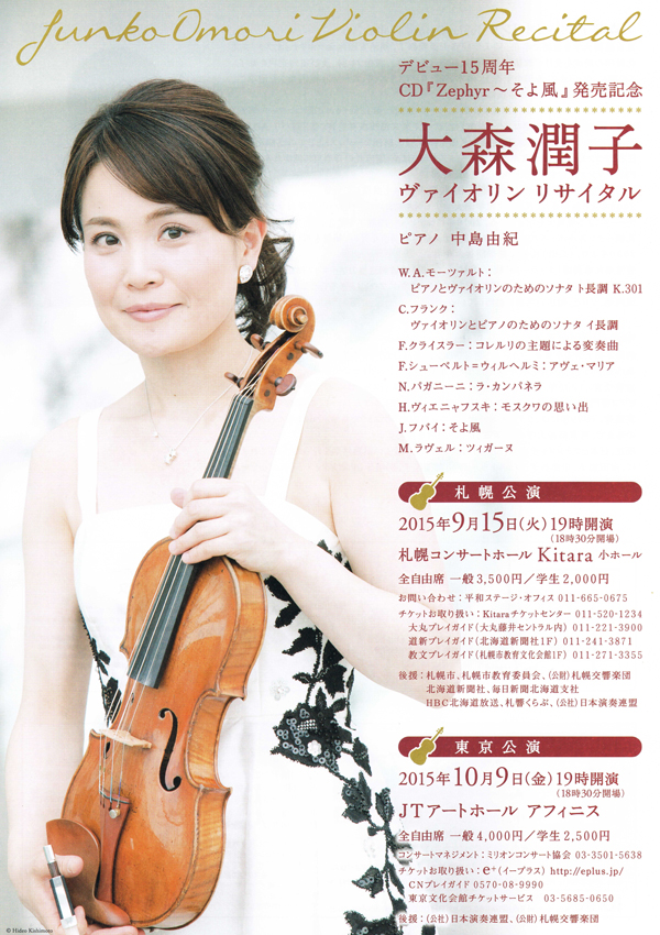 〜札幌公演〜 2015年9月15日(火)19時 札幌コンサートホール Kitara 小ホール(北海道・札幌) 全自由席 一般¥3,500、学生¥2,000 [後援] 札幌市、札幌市教育委員会、(公財)札幌交響楽団 北海道新聞社、毎日新聞北海道支社 HBC北海道放送、札響くらぶ、(公社)日本演奏連盟 [チケット取扱い] Kitaraチケットセンター TEL.011-520-1234 大丸プレイガイド TEL.011-221-3900 道新プレイガイド TEL.011-241-3871 教文プレイガイド TEL.011-271-3355 [お問合せ] 平和ステージ・オフィス TEL.011-665-0675 | |
