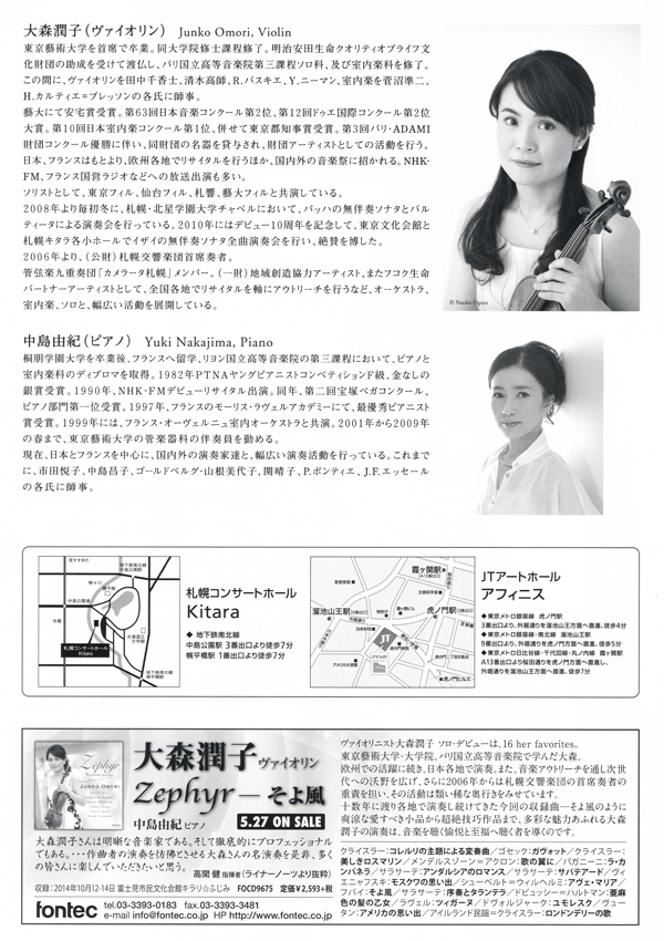 ヴァイオリン:大森潤子 ピアノ:中島由紀 |