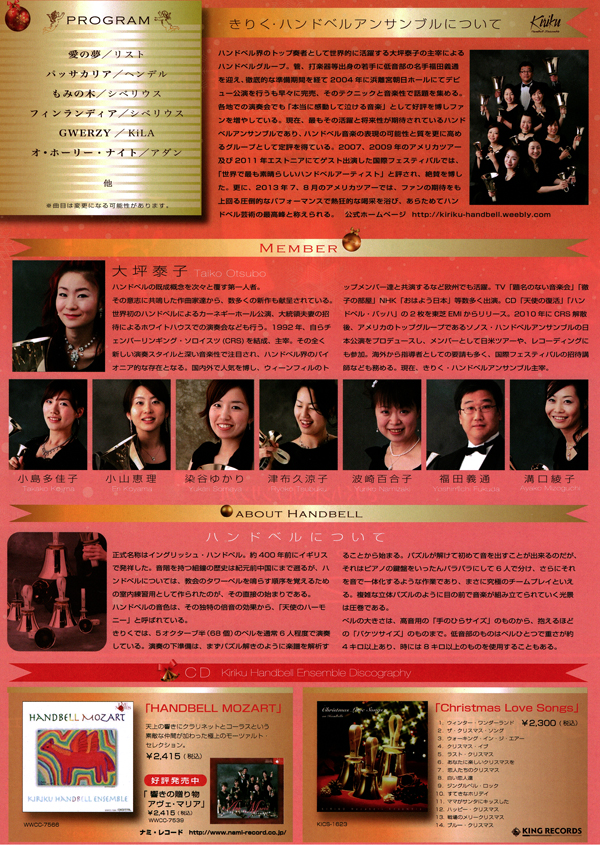 きりく・ハンドベルアンサンブル 大坪泰子 小島多佳子、小山恵理、染谷ゆかり、津布久涼子、波崎百合子、福田義通、溝口綾子 |