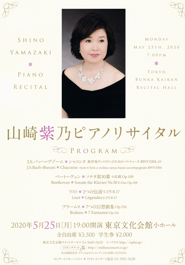 [チケット取扱い] 東京文化会館チケットサービス TEL.03-5685-0650 e+(イープラス)https://eplus.jp ミリオンチケット(オンライン・チケットサービス) [コンサートマネージメント] ミリオンコンサート協会 TEL.03-3501-5638 |