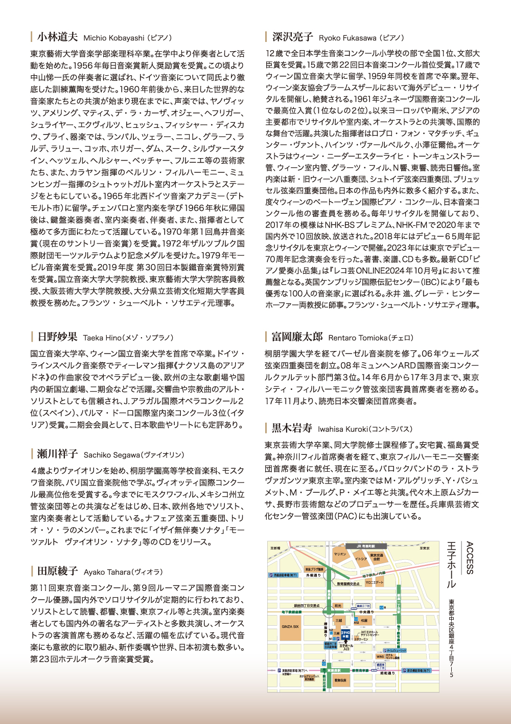 小林道夫(ピアノ) 深沢亮子(ピアノ) 日野妙果 (メゾ・ソプラノ) 瀬川祥子(ヴァイオリン) 田原綾子(ヴィオラ) 富岡廉太郎(チェロ) 黒木岩寿(コントラバス) |